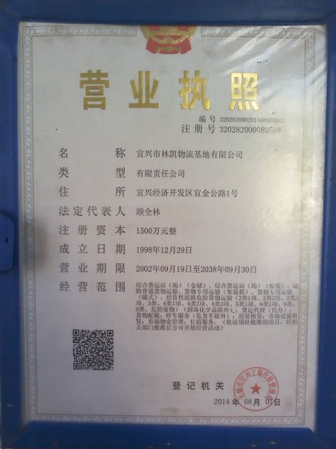 宜兴市林凯物流基地位于国家级宜兴经济开发区城西物流园规划区内,总计划投资1.9亿元,由宜兴市林凯物流基地有限公司独资建设。基地按照“整体规划、分步实施”的运作方式,一期项目占地78.5亩,已于2010年竣工投运,目前已有综合业务楼15000平方米、停车场20000平方米、仓储8000平方米、餐饮住宿用房7000平方米,入住商户达100余家,年交易额达2.5亿元。基地按照要求装备消防喷淋系统和电子监控报警系统,运用现代化物流管理方式实现物流信息化,并安装了120吨的电子磅,从源头治理货运超限、超载现象,为我市工商企业提供便捷、安全、多样的货运、配送、加工等物流服务。二期项目为转型升级项目,主要建设物流信息交易大厅、立体平台式仓库,各项手续正在报批中。2011年公司被列入《江苏省交通货运与物流企业加快转型升级百家企业名录》,同时被无锡市人民政府授予“无锡市重点物流基地”的称号、被宜兴市人民政府授予“诚信兴商年示范单位”,2012年顺利通过江苏省交通厅“交通物流基地建设投资补助”的论证,2013年成功入选江苏省第八批“省重点物流基地”。